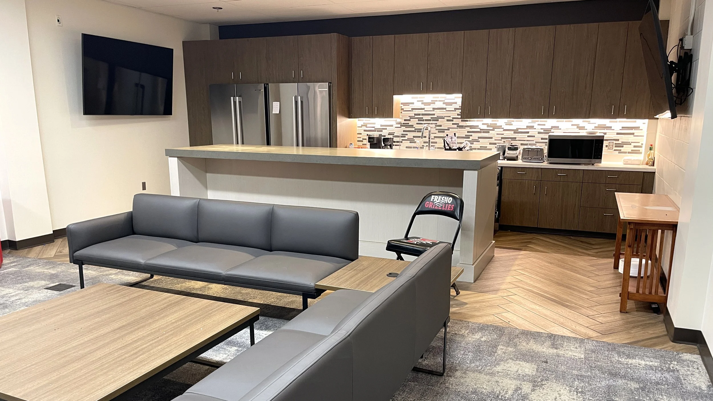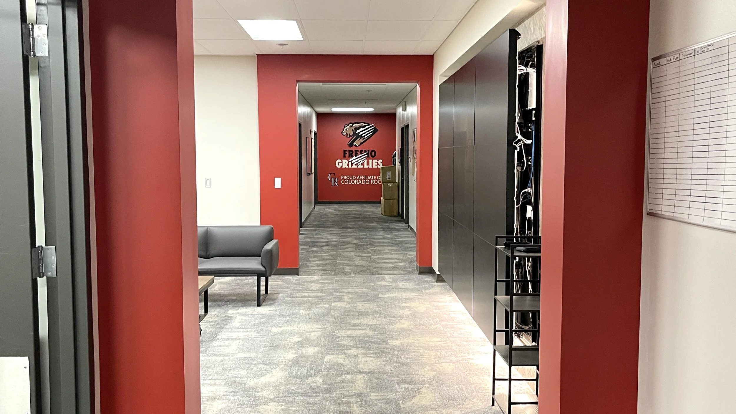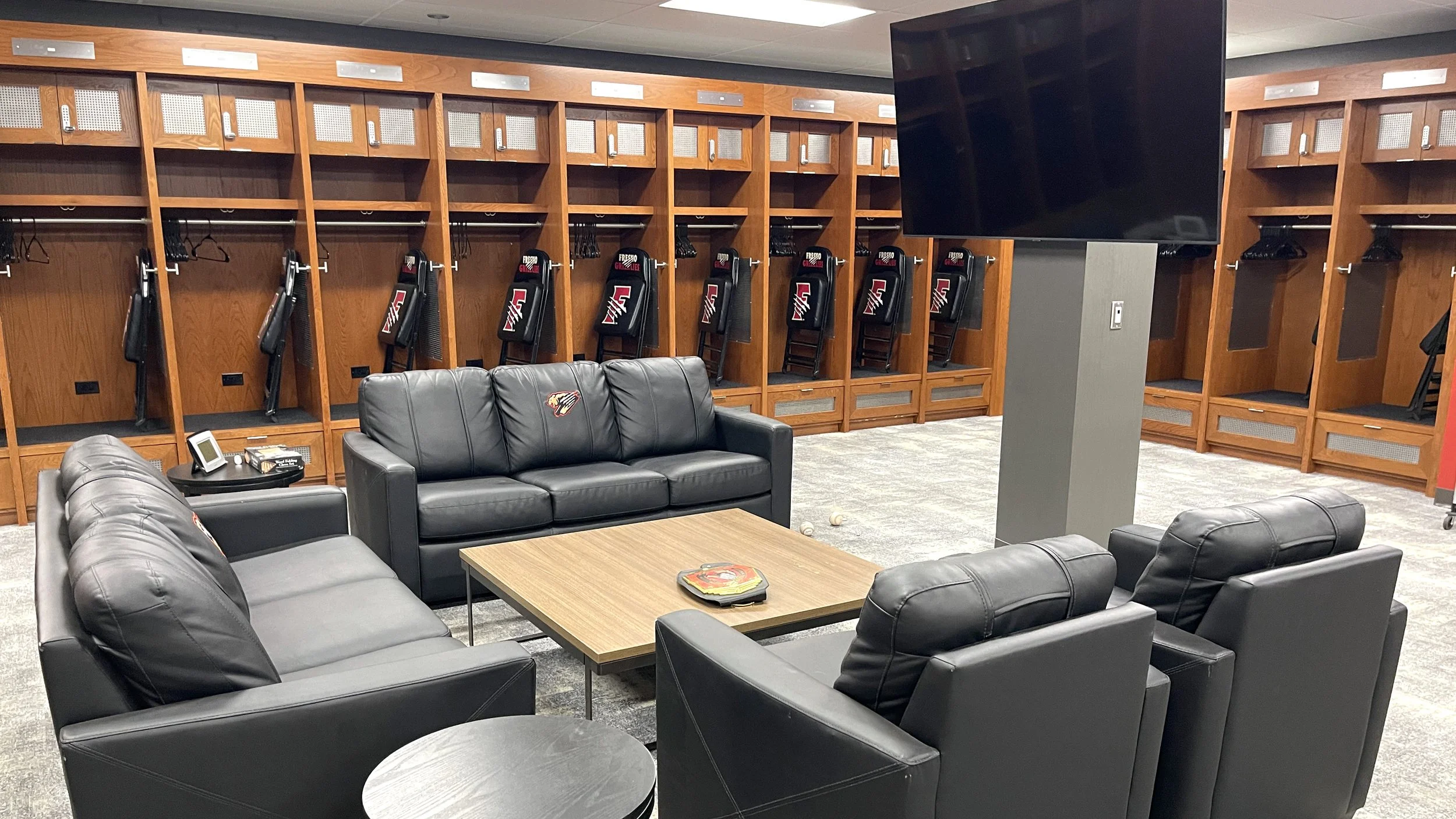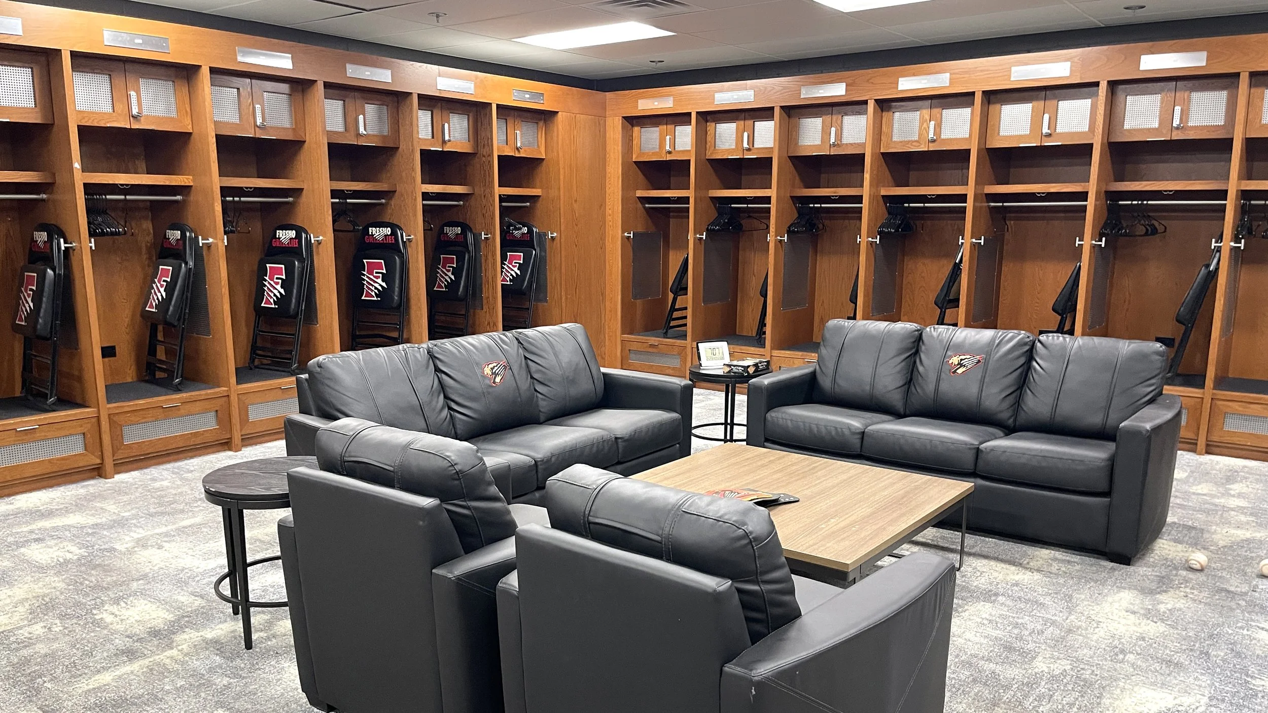 The Fresno Grizzlies’ home clubhouse at Chukchansi Park underwent a major renovation in 2024, designed by Larimer Design to meet Major League Baseball’s updated facility standards for player development environments. As the Single-A affiliate of the Colorado Rockies, the Grizzlies now enjoy a modern, functional, and comfortable space that supports performance, team identity, and well-being.