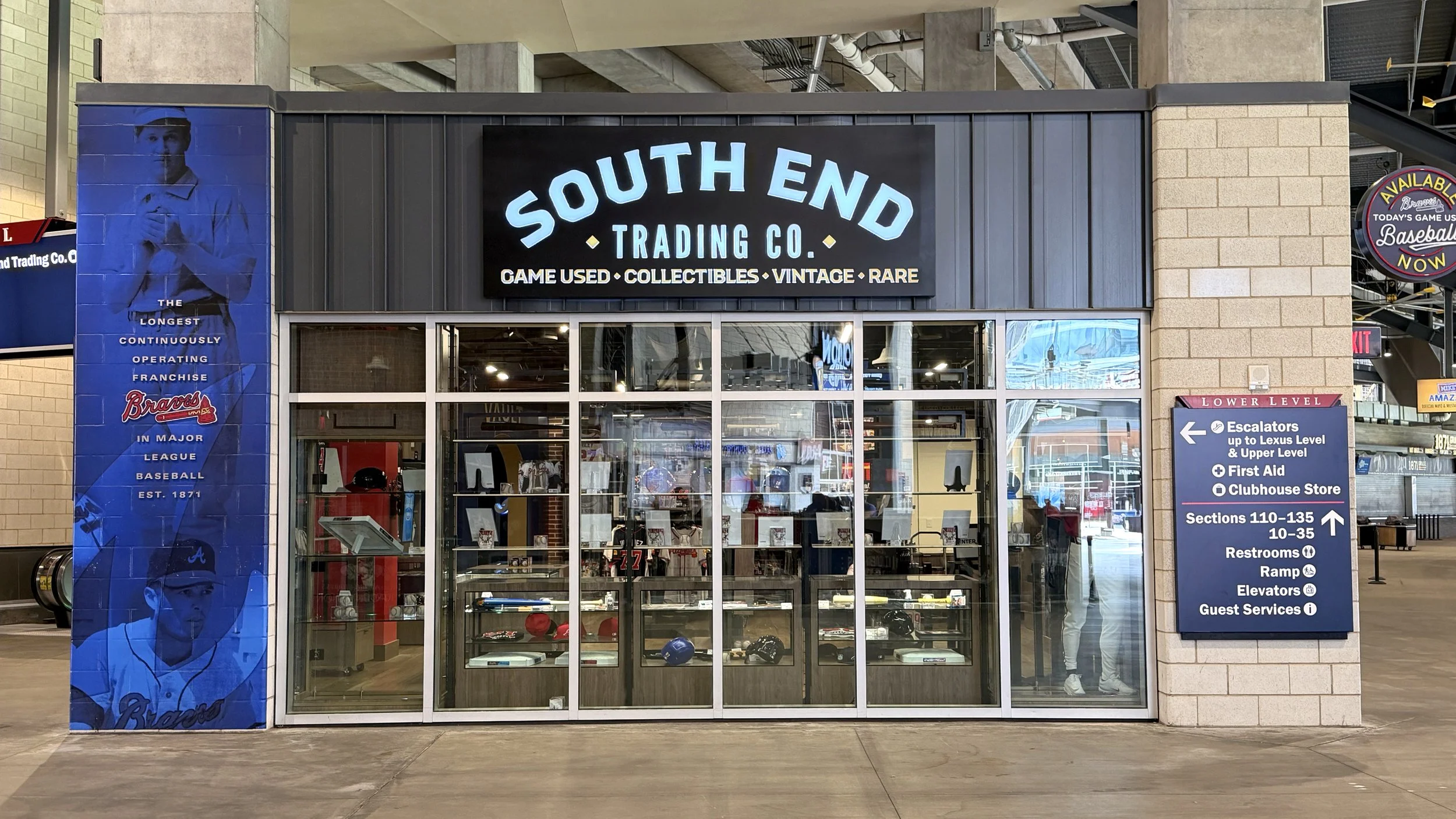 South End Trading Co. redefines the ballpark retail experience as a premium, immersive destination centered on the culture and collectability of the game. Located near the Right Field Gate at Truist Park, the store transforms prominent concourse frontage into a high-impact retail environment designed to engage fans and elevate the value of officially licensed and game-used merchandise.