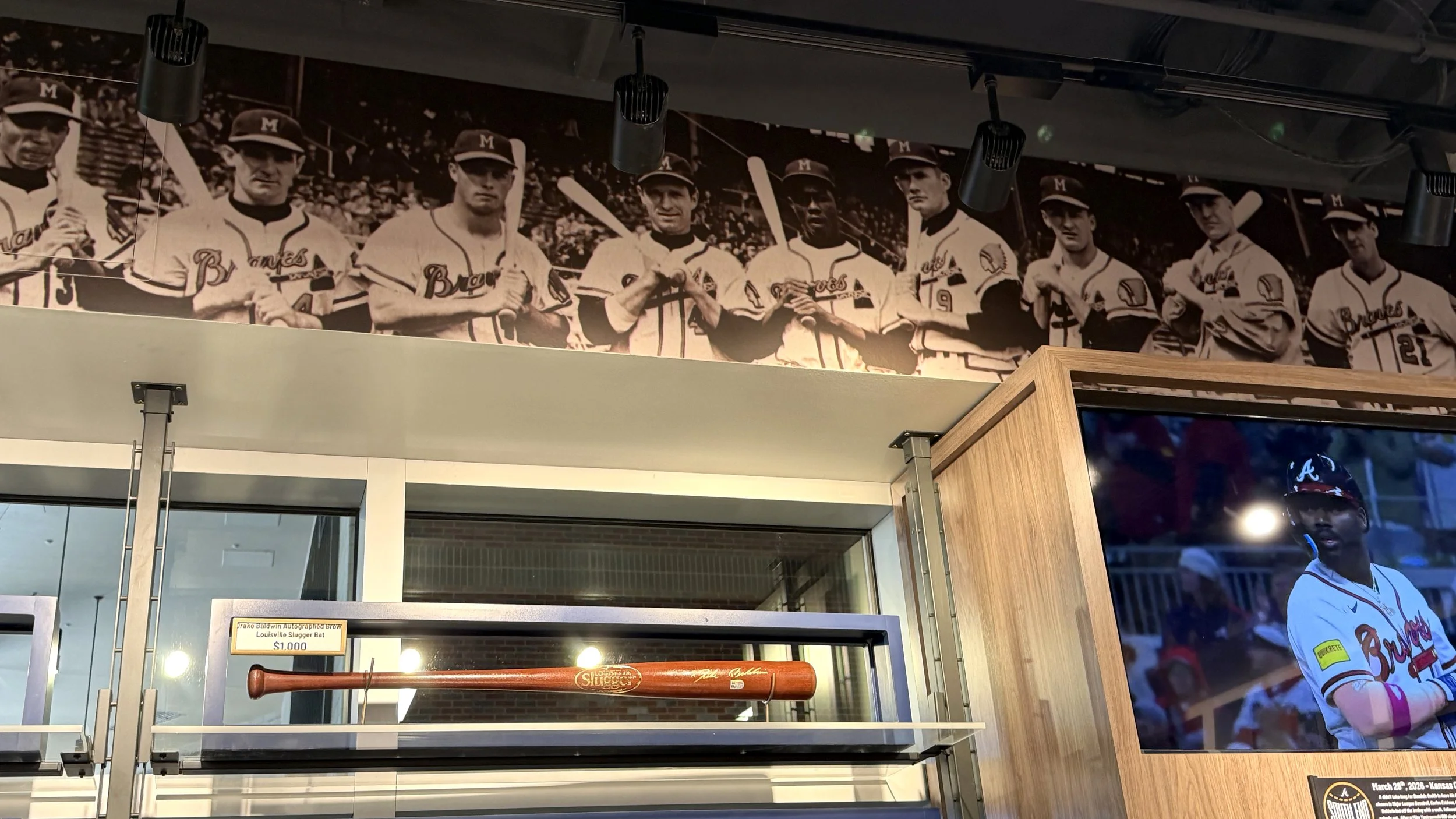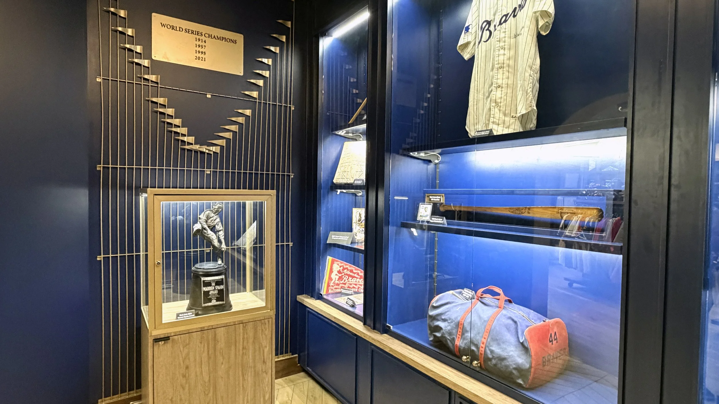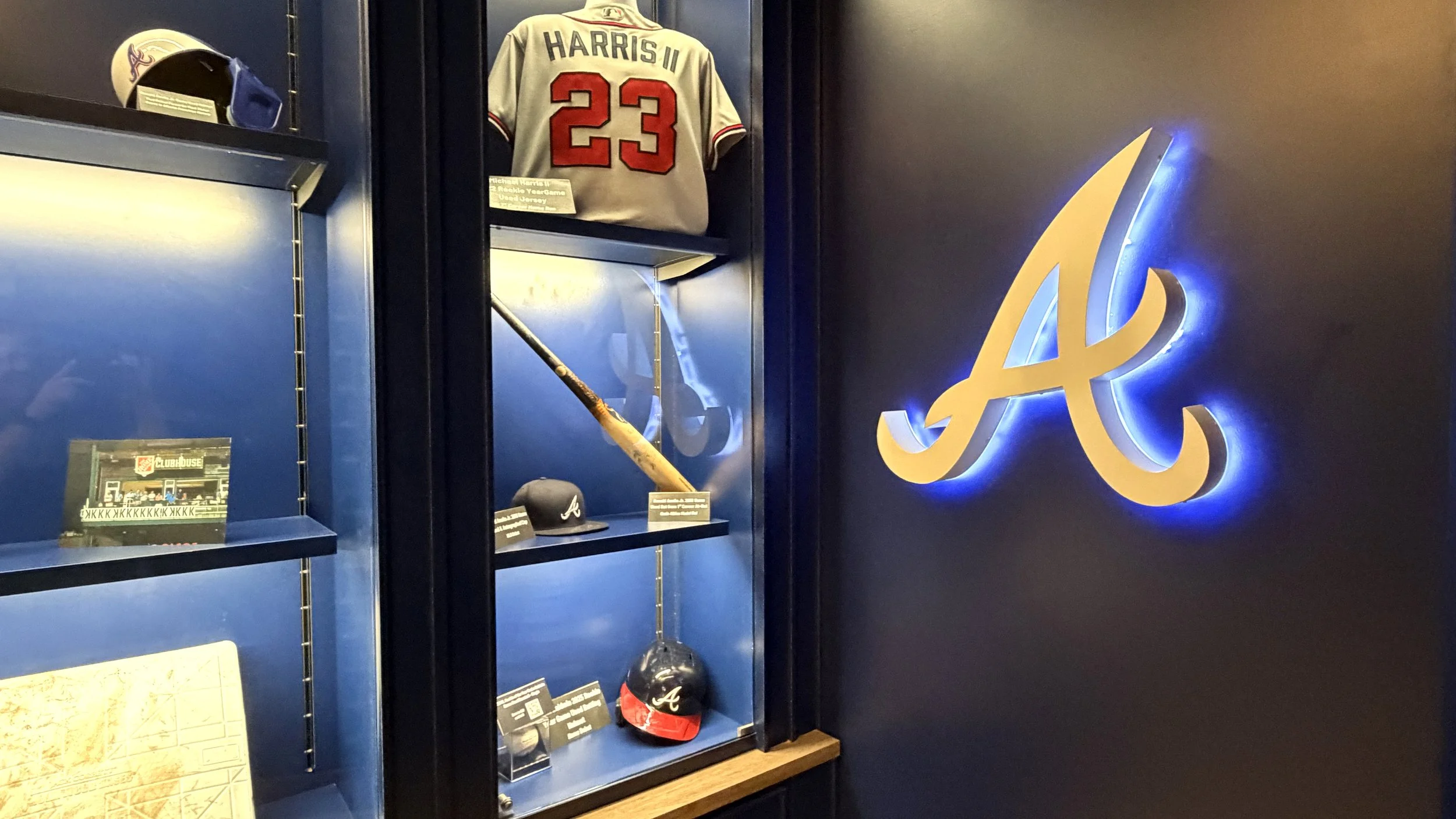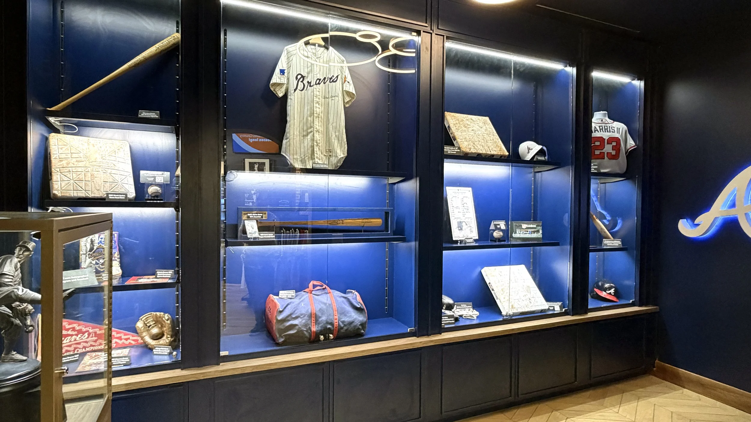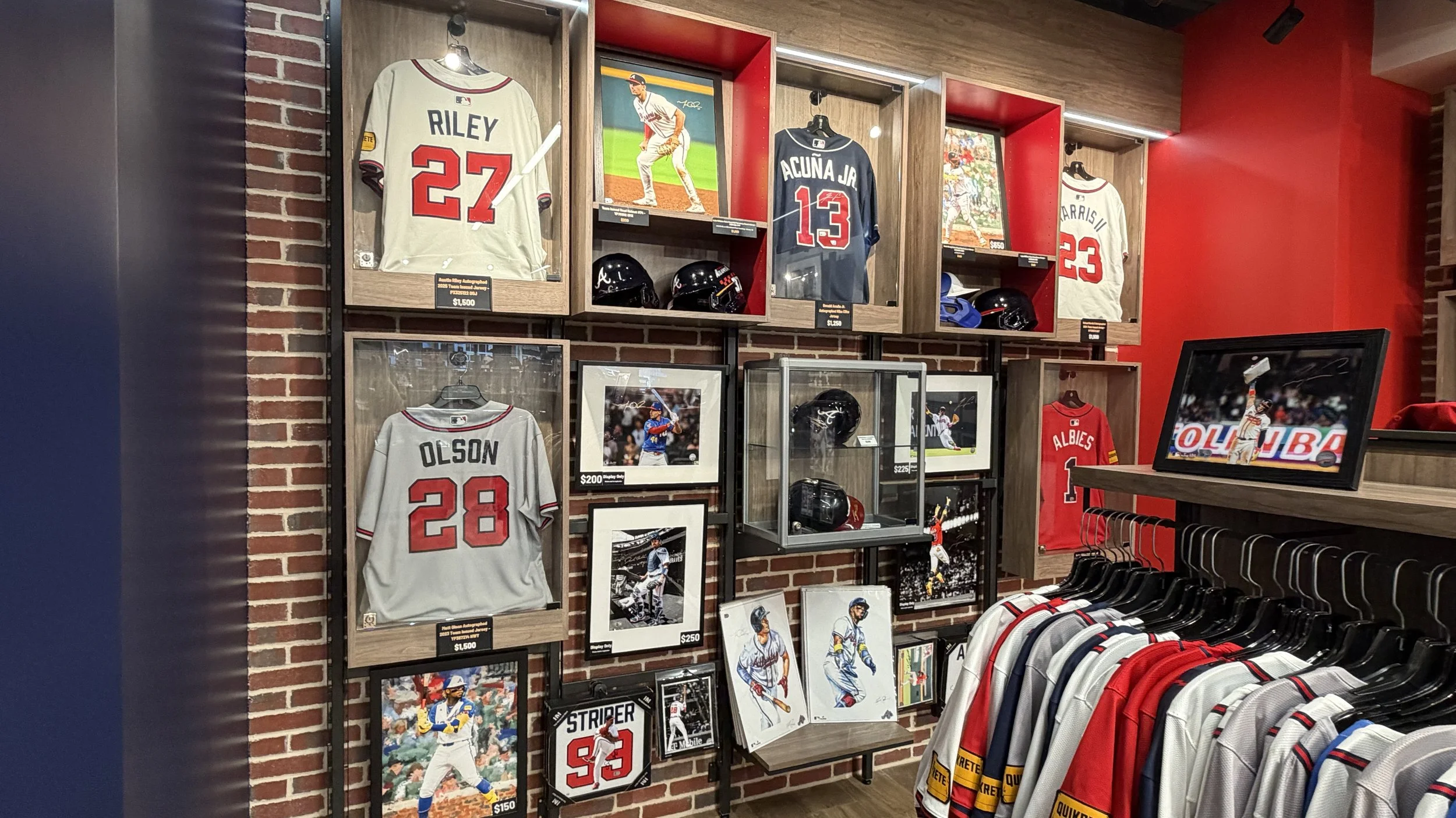 The design emphasizes openness, clarity, and curated discovery, allowing fans to move fluidly through the space while engaging with product in a more intentional and elevated way. A defining feature of the space is The Vault—a dedicated, museum-like archive showcasing the Braves’ most coveted and historic collectibles. Designed as a focal point within the store, The Vault elevates game-used memorabilia into a storytelling experience, reinforcing authenticity while creating a sense of rarity and exclusivity that resonates with collectors and casual fans alike.